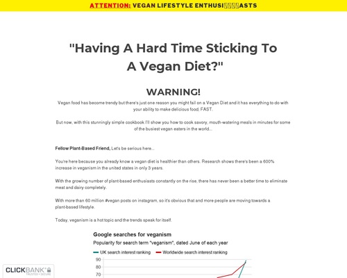 Description: Updated for 2025! 250+ Delicious Vegan Recipes + 30-Day Meal Plan & Bonuses! 75% COMMISSION! Earn $60-80 per sale with high-converting upsells! LOW Refund Rate & HIGH Conversions!
